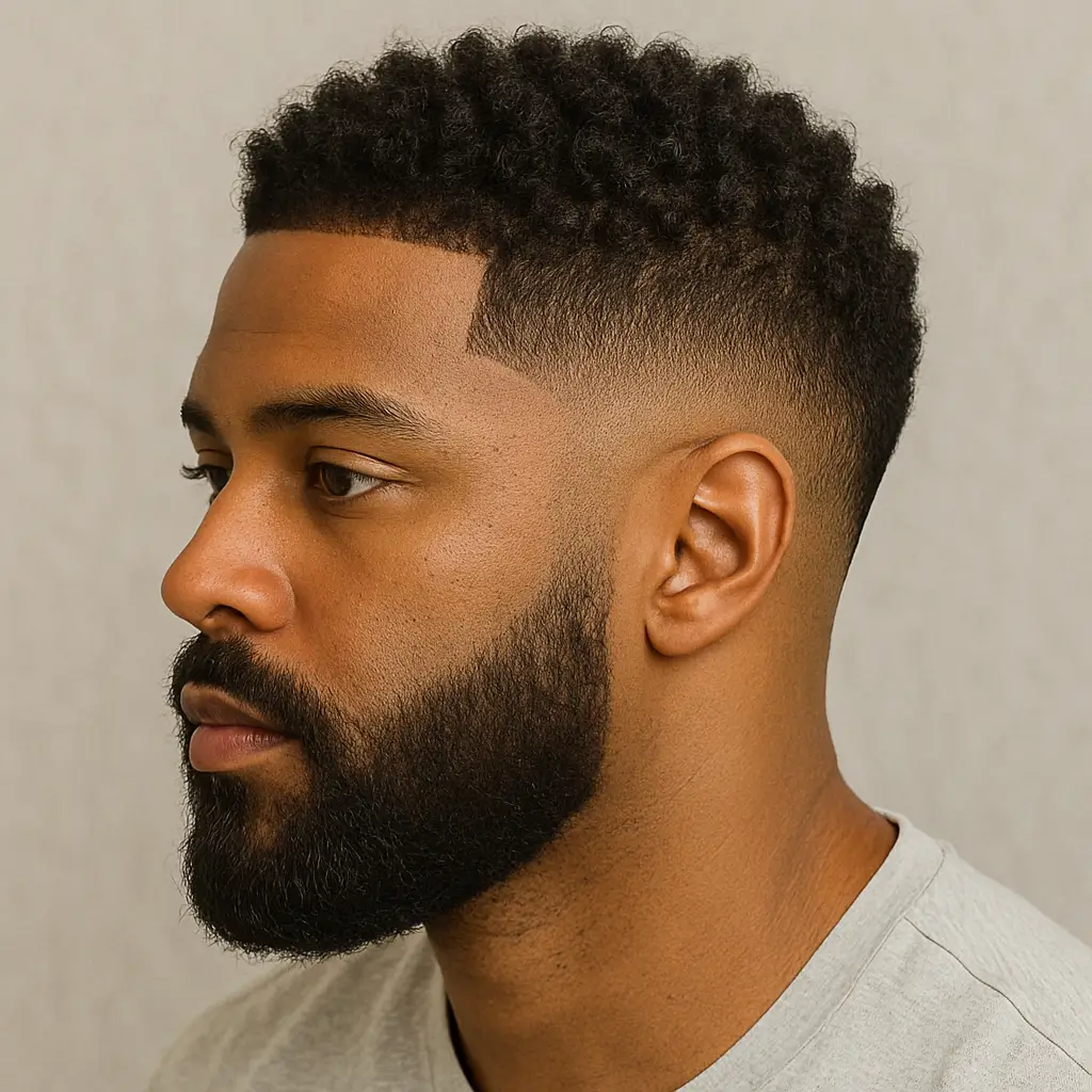 This style is perfect for men who want to embrace their natural curls while keeping the sides light and neat. Ask your barber to keep the fade balanced so it supports the roundness of the afro.