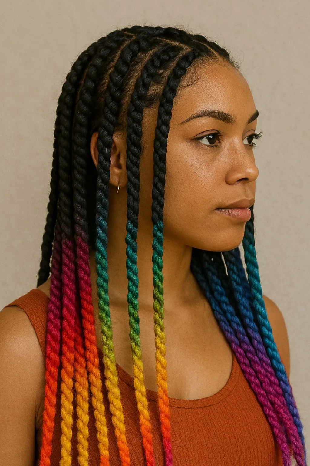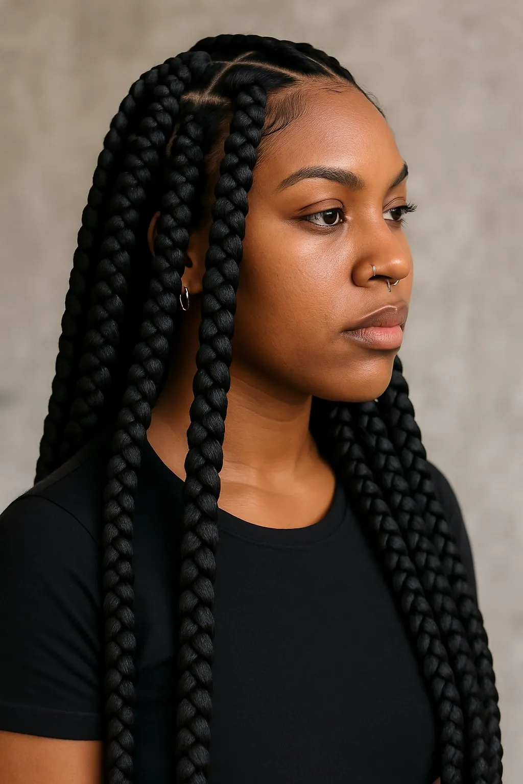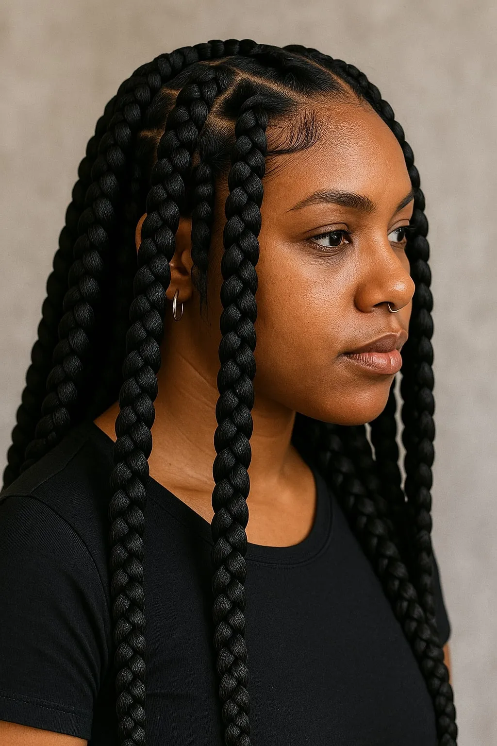 Jumbo knotless braids offer a striking statement with less installation time, ideal for those who appreciate bold aesthetics but prefer quicker styling sessions. Despite their larger size, these braids remain low-tension hairstyles, protecting your scalp while providing an effortlessly fashionable look. Complement jumbo braids with minimal accessories or vibrant threads for extra charm and personality.