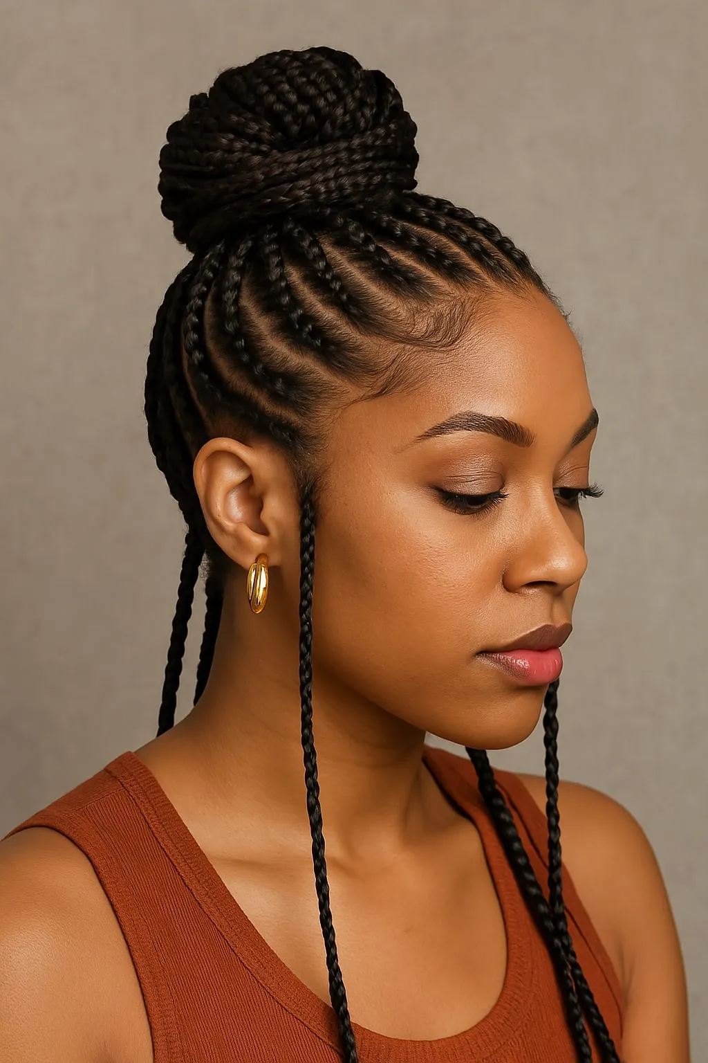A knotless braids updo showcases the impressive styling versatility of knotless box braids. From sophisticated buns to stylish crown braids, an updo is ideal for special occasions or professional settings. This style highlights your braids beautifully while keeping hair away from the face, enhancing comfort and ease throughout the day. Hair accessories such as jeweled pins or elegant combs can elevate this hairstyle even further, creating a polished, refined look.
