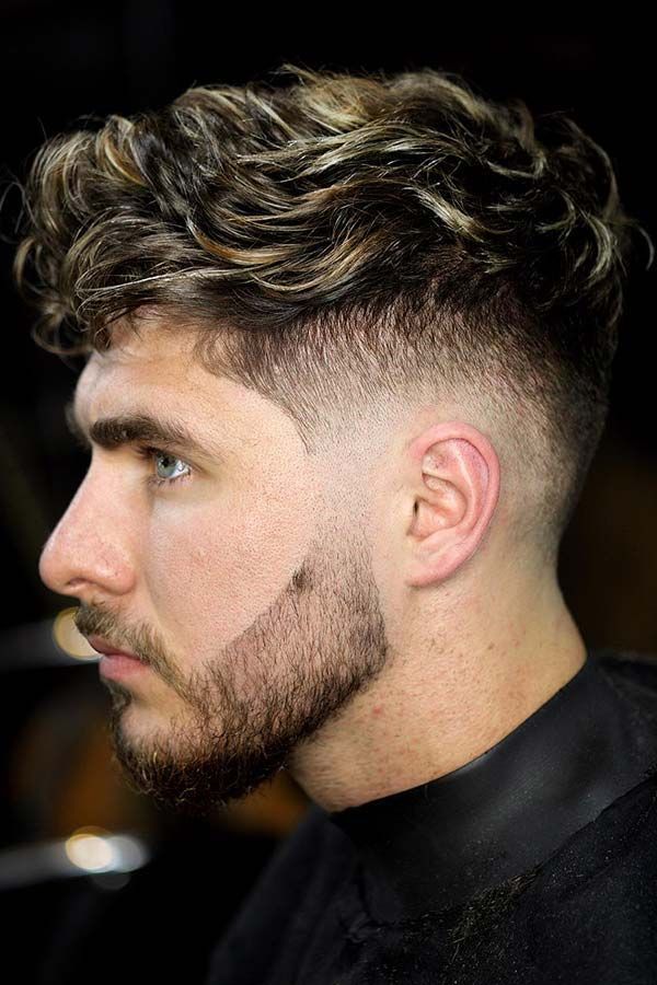 4. Curly Hair Fade Haircut with Hard Part