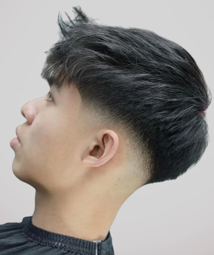 Designed for men with naturally straight, thick Asian hair, this cut keeps the top short and neat while tapering around the ears and neckline. The sharp hairline gives it a clean, professional finish that doesn’t require much styling. A light matte cream after blow-drying is all you need. Great for oval, round, or heart-shaped faces.