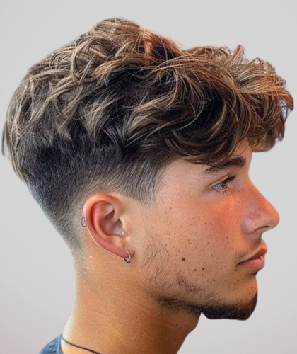 Sun-kissed and trendy, this cut combines a sharp fade with blonde textured hair on top. The waves or layers catch light, giving a fresh, youthful vibe. Blow-dry with a matte styling cream for soft definition. Ideal for teens or men who want a casual, streetwear-inspired look.