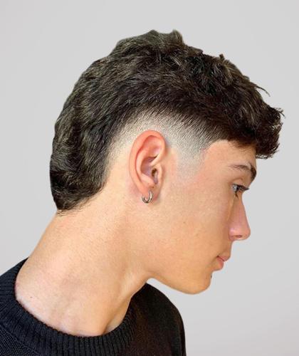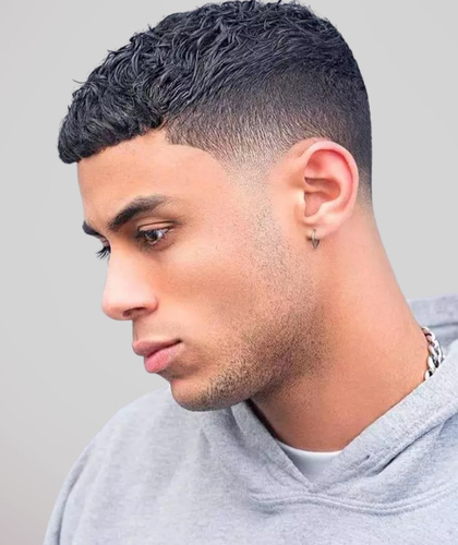 This style blends soft waves with clean fade lines. The wavy texture on top adds volume and flow, while the taper keeps the sides polished. Use a lightweight texture cream and scrunch your hair as you dry to define natural waves. Perfect for oval, oblong, or diamond face shapes.