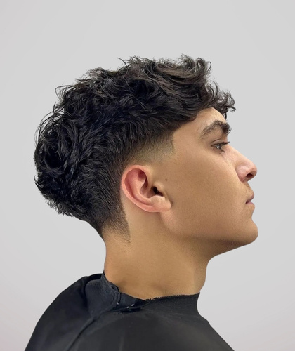 If you love curls, the permed taper fade offers volume and bounce on top with a clean fade at the sides. Curl cream and a diffuser will boost definition and shape. Great for men with round or oval faces who want personality in their cut.