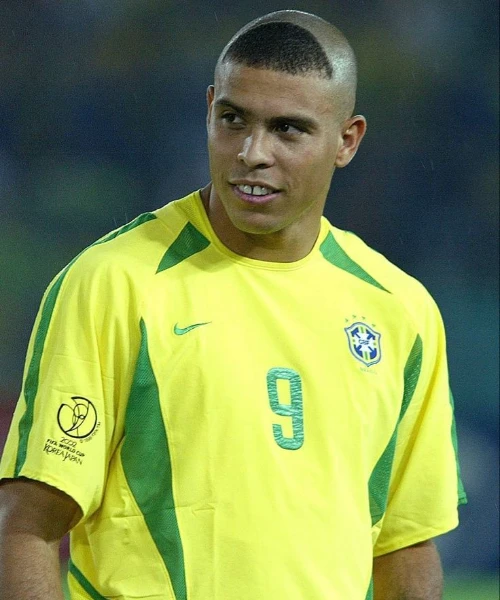 Ronaldo’s most famous haircut is often called the “O Fenômeno haircut” or the “2002 World Cup buzz cut.” It featured a shaved head with a small triangular patch of hair left at the front — a style that became instantly iconic after Brazil’s World Cup win.