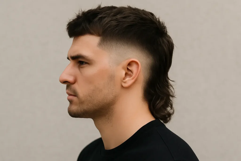 A taper fade mullet combines the clean look of a fade haircut with the boldness of the classic mullet. The taper fade shortens the sides and back progressively while leaving length at the nape. It’s a mullet transformation that suits anyone wanting something modern yet nostalgic.