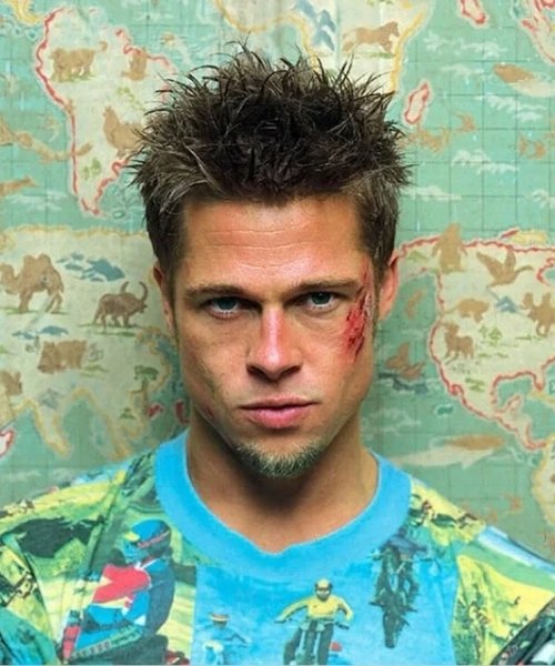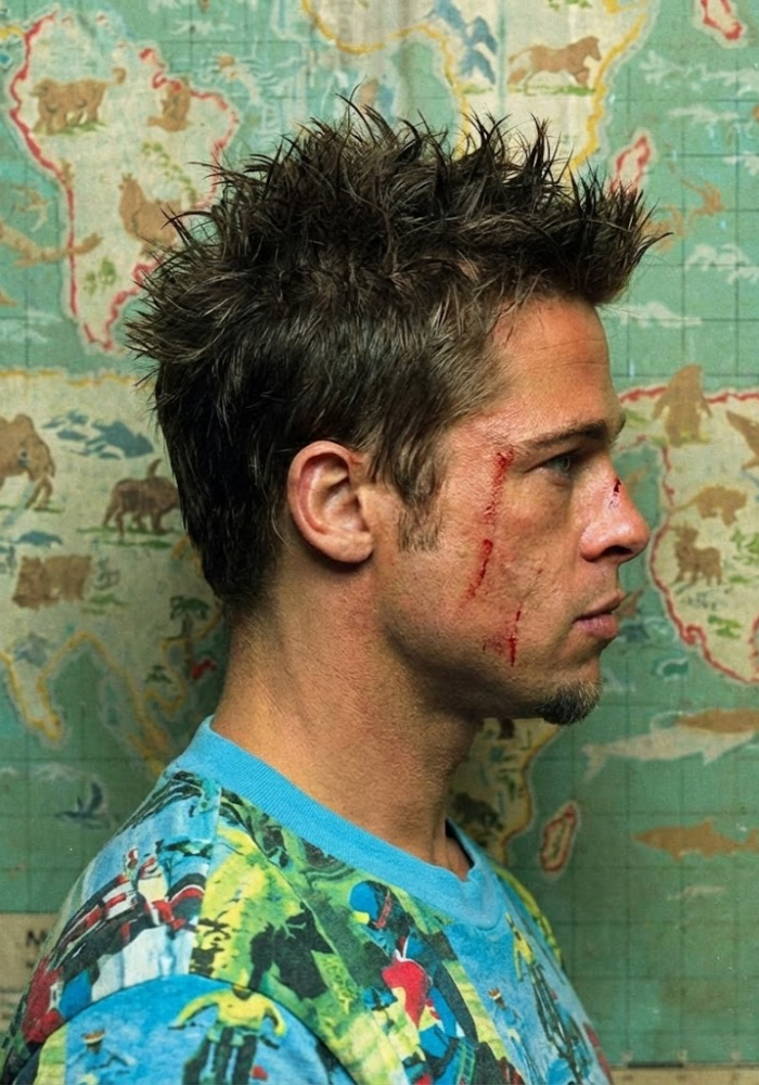 If you search “Tyler Durden haircut”, you are usually after one thing: that messy, spiky, lived-in cut Brad Pitt wears in Fight Club (1999).